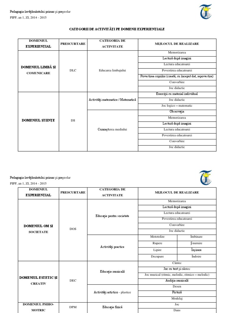 Activităţi Pe Domenii Experienţiale Gradinita Diana
