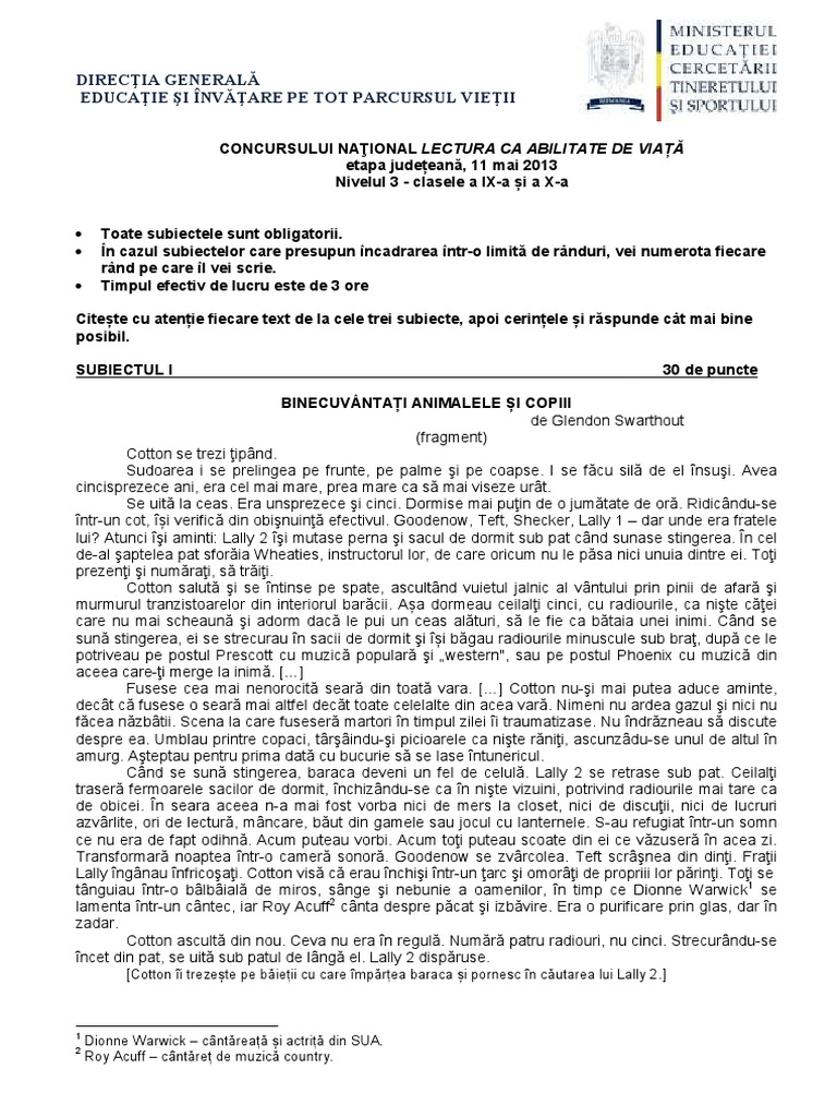 Regulament Specific Al Olimpiadei Lectura Ca Abilitate De Viata Pentr