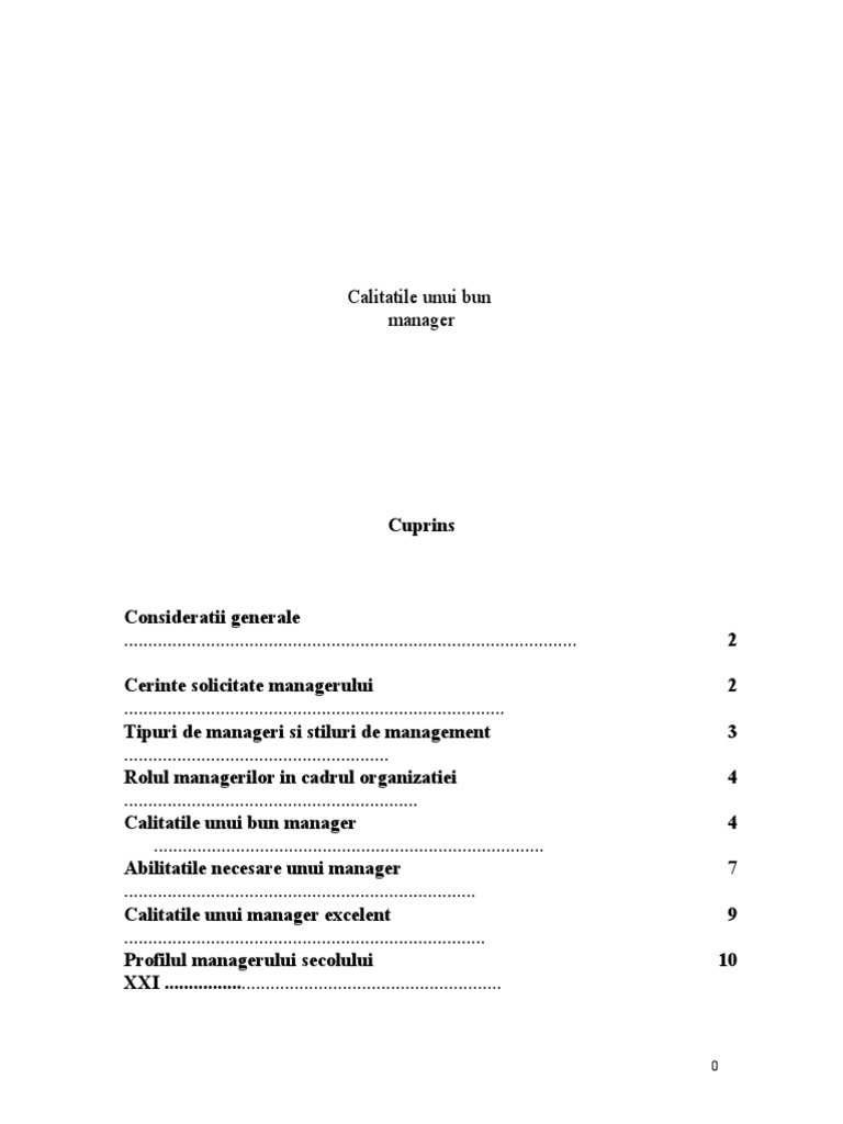 Referat Profilul Calitatile Si Pregatirea Unui Manager Economie 85165