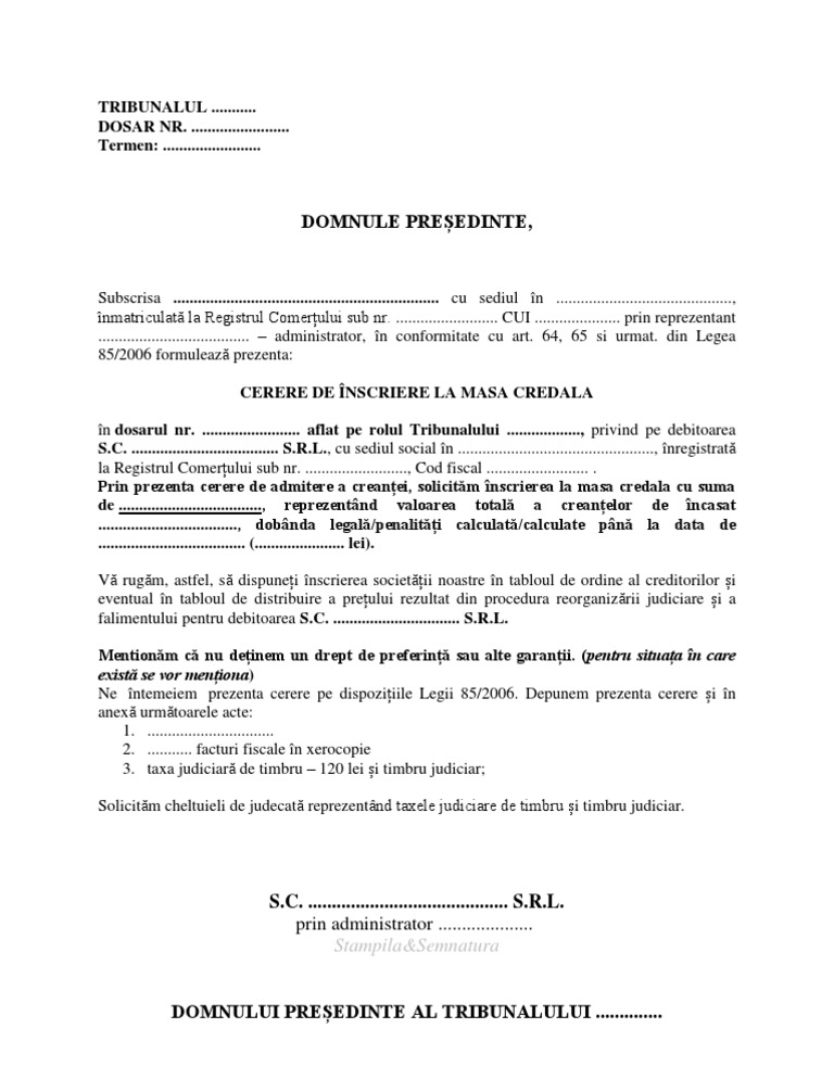 Cerere De Inscriere La Masa Credala Cabinet Avocat Bucuresti Iulia Blaja