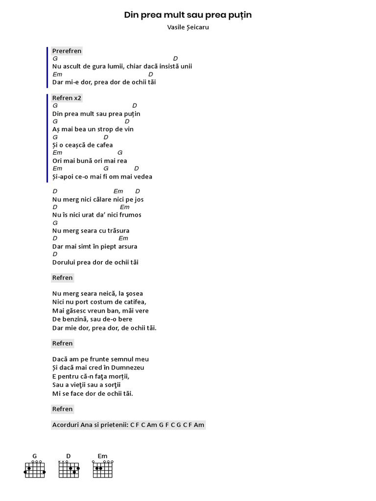 Din Prea Mult Sau Prea Putin Versuri