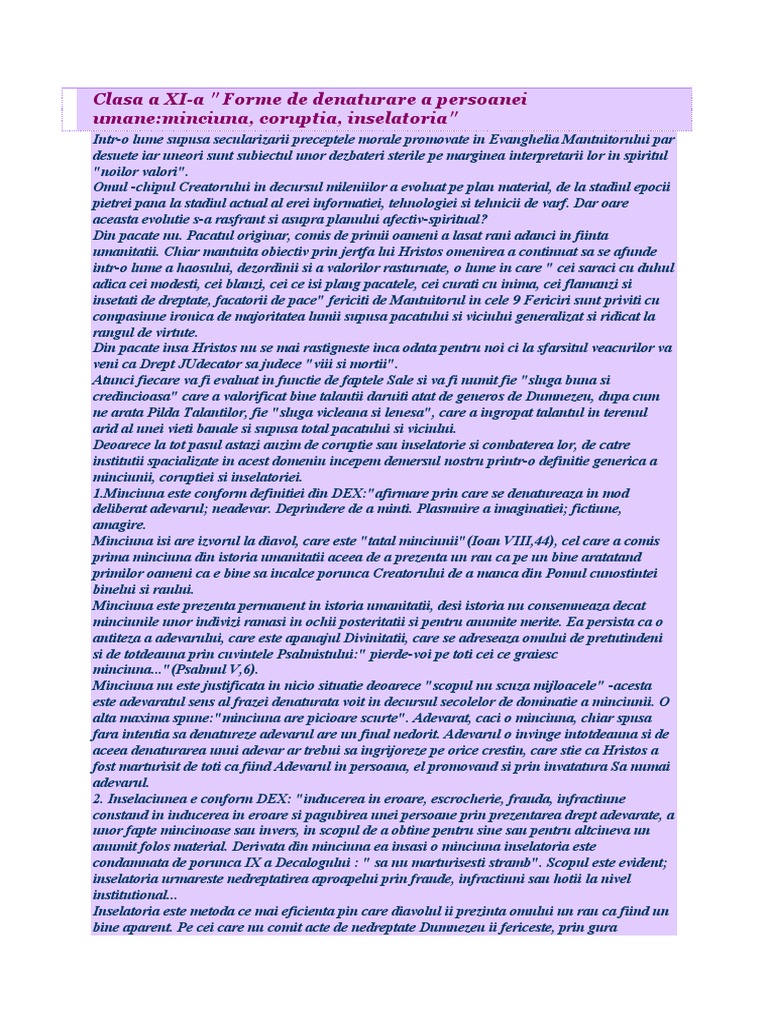 Ciprian Leontin Păun L E R Vaslui Clasa A Xi A Forme De Denaturare A Persoanei Umane Minciuna Coruptia Inselatoria