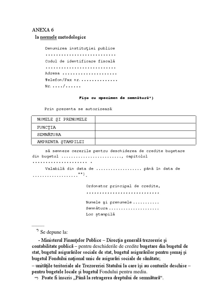 Fisa Specimen De Semnatura Trezorerie Model