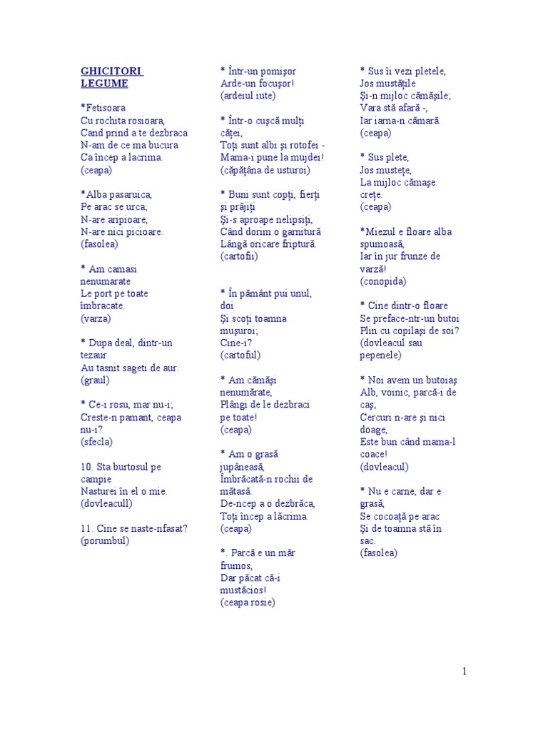 Ghicitori Despre Fructe și Legume