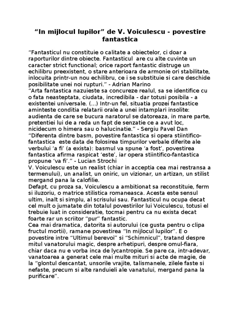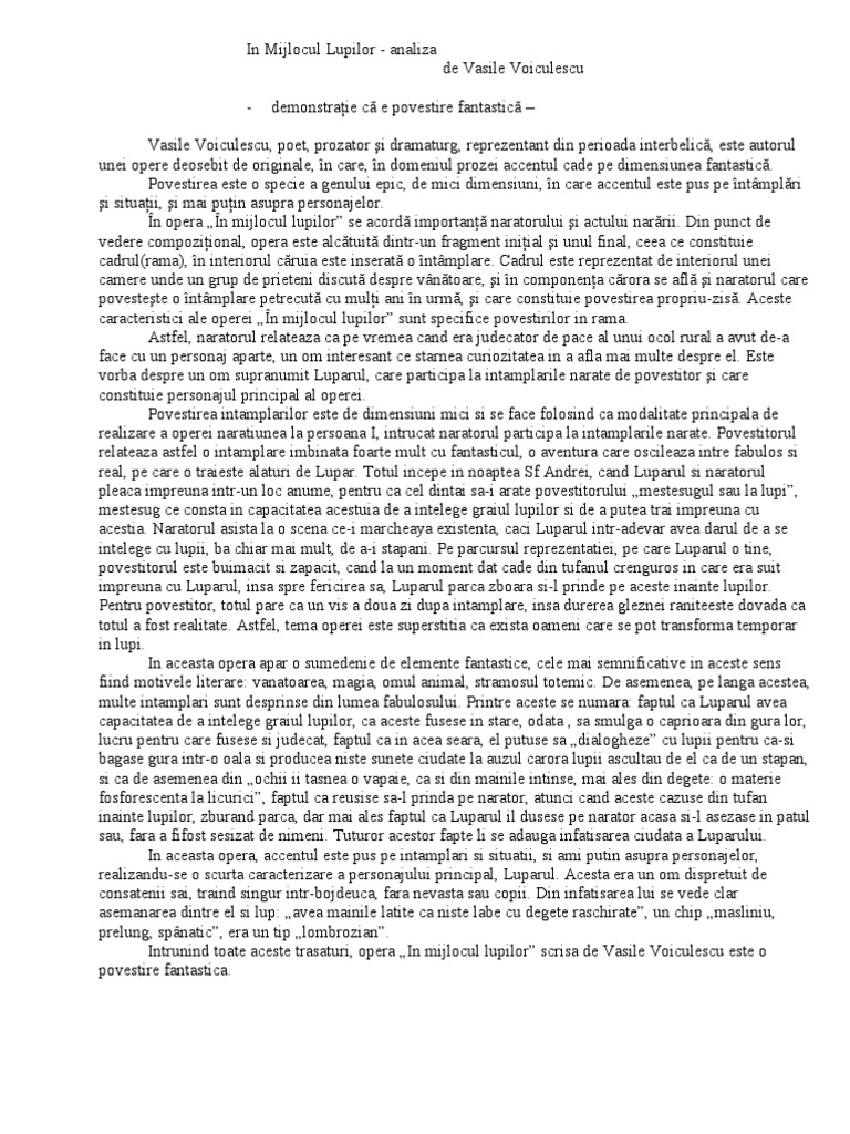 Referat In Mijlocul Lupilor De Vasile Voiculescu 327559 Graduo