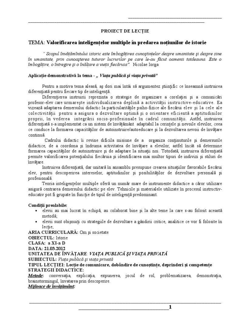 Proiect Didactic Bazat Pe Instruire Diferentiata