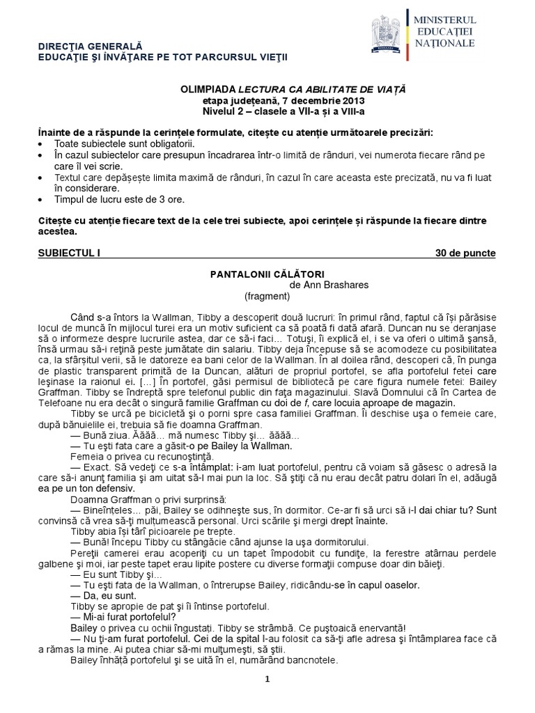 2015 Olimpiada Lectura Ca Abilitate De Viata Judeteana Clasele Viiviii Subiectebarem