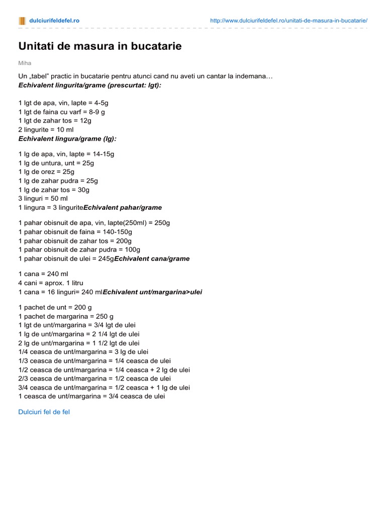 Unitati De Masura In Bucatarie