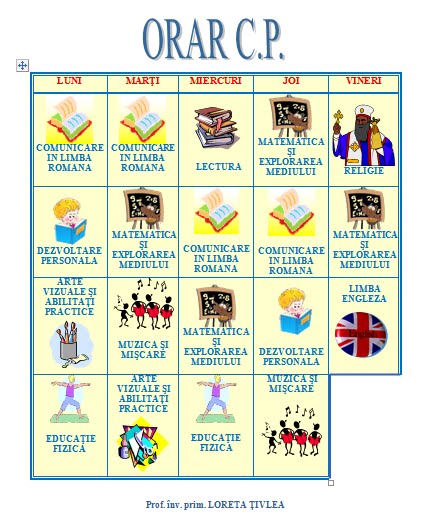 Orar Cu Imagini Clasa Pregatitoare Format Editabil Emalascoala