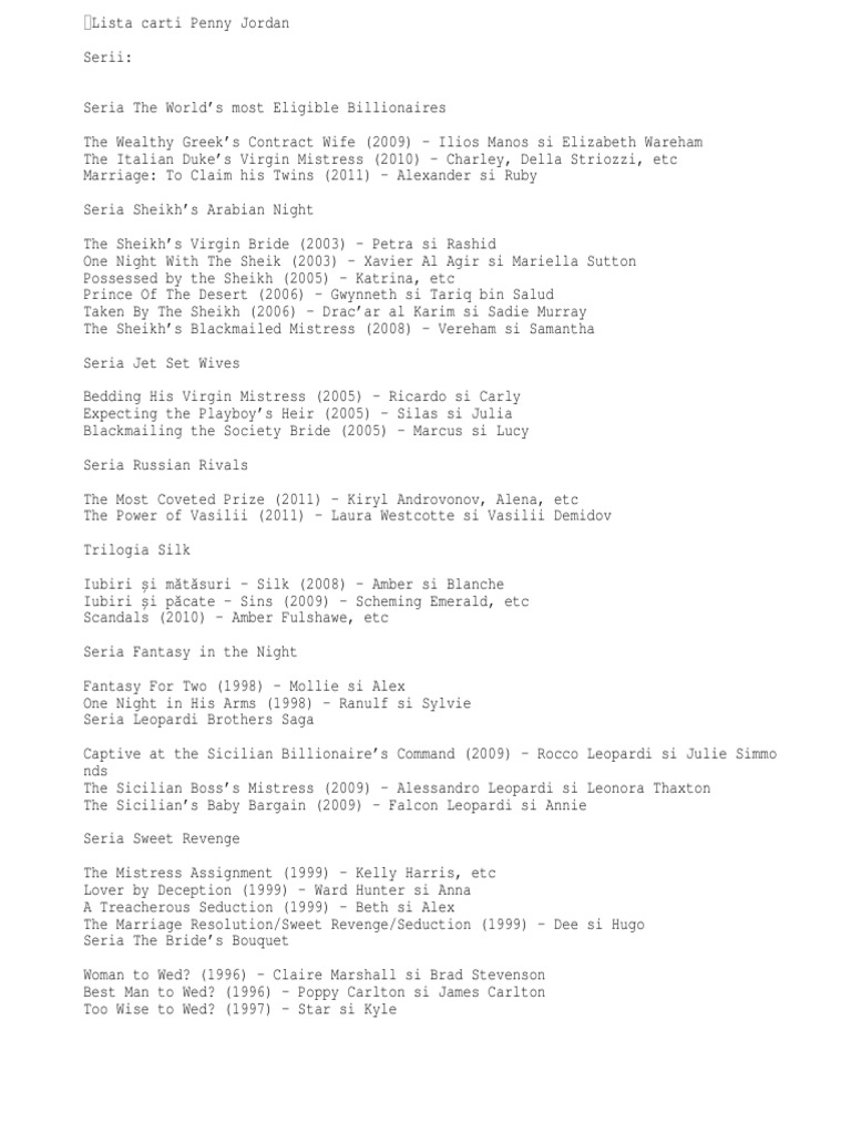 Lista Carti Penny Jordan