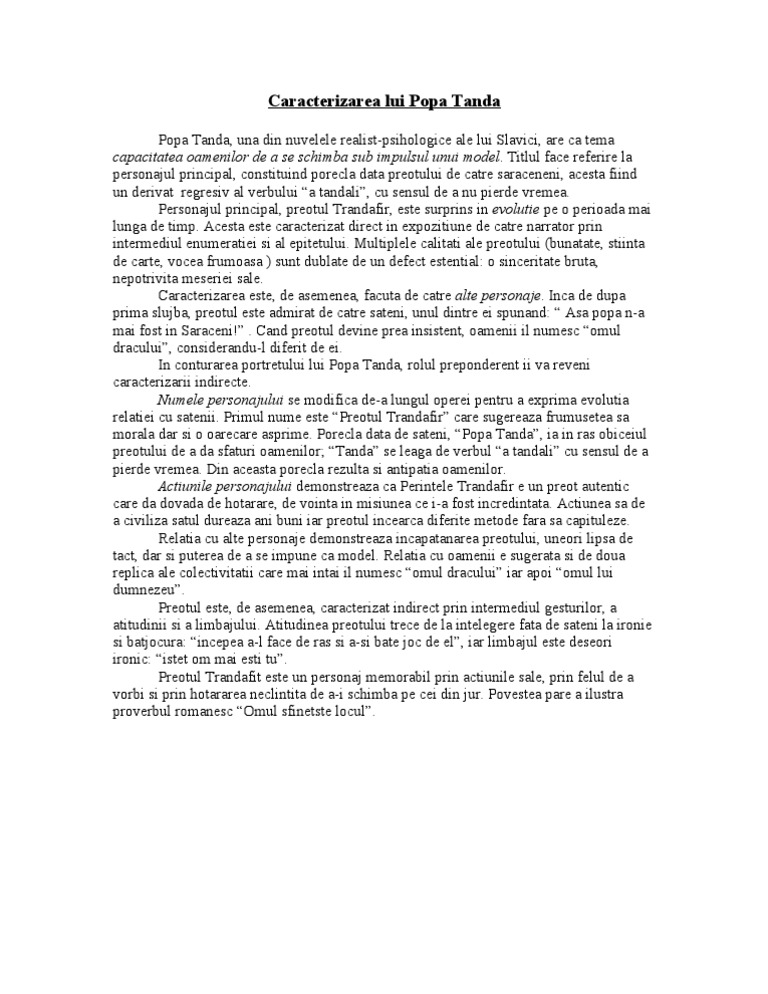 Caracterizare Caracterizarea Personajului Popa Tanda 327178 Graduo