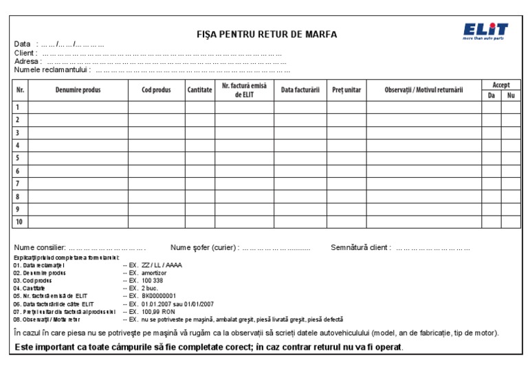 Proces Verbal De Retur Marfa Shop Nr Data Document 1 2 3 4 5 6 Va Fi Refuzata Receptia Retururilor Aduse De La Clienti Fara Acest Formular Completat La Toate Rubricile Corect Pdf Document