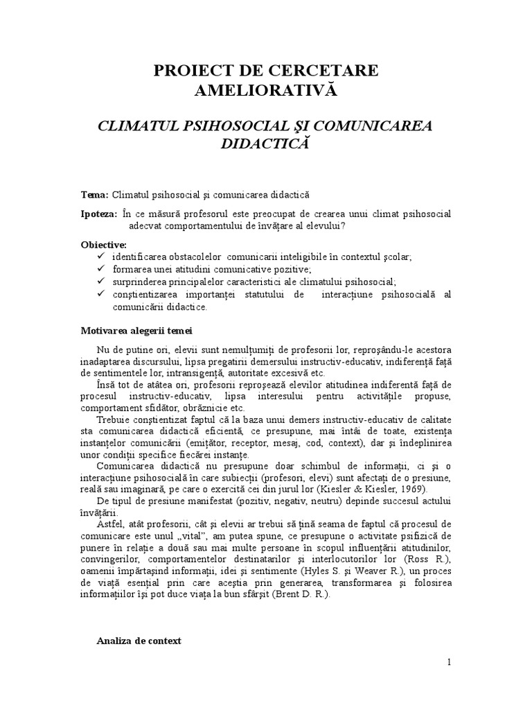 Proiect Proiect De Cercetare Pedagogica Pedagogie 131490