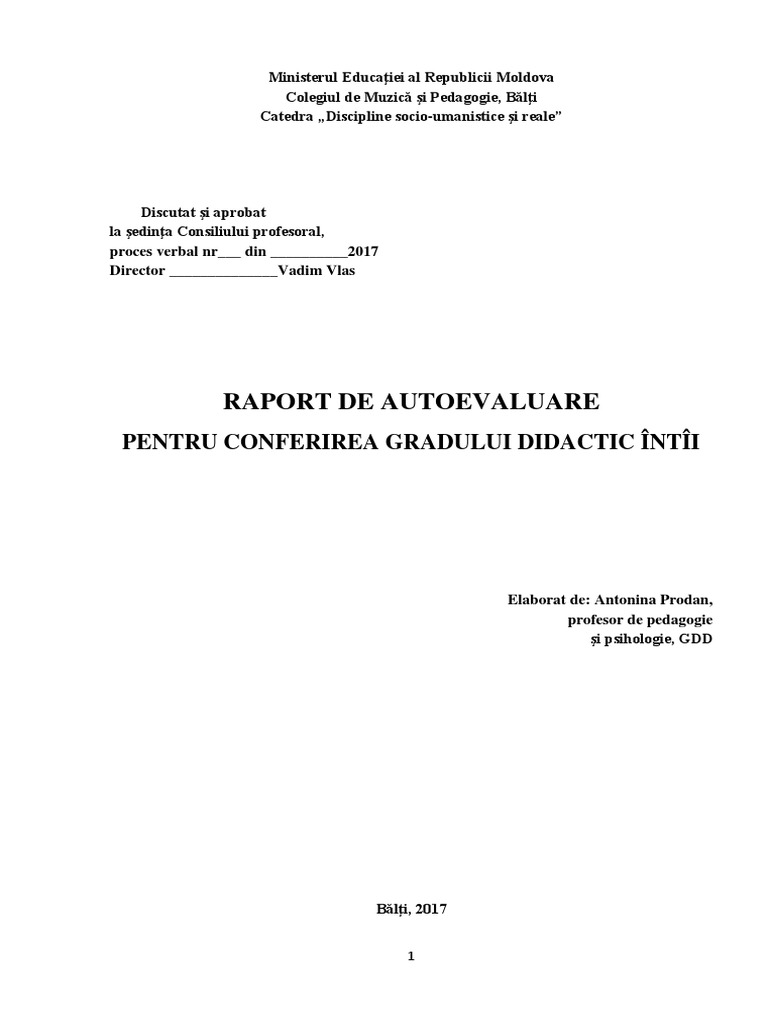 Raport De Autoevaluare Caprian Svetlana By Liliana Rotari