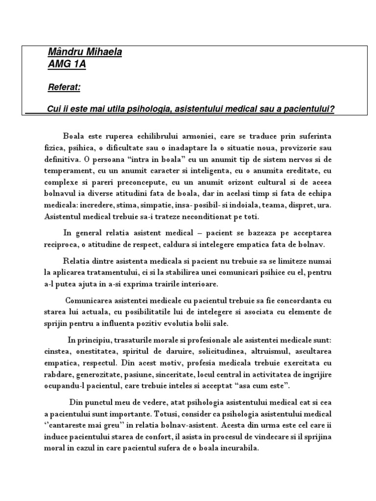 Mandru Mihaela Amg 1a Referat Cui Ii Este Mai Utila Psihologia Asistentului Medical Sau A Pacientului