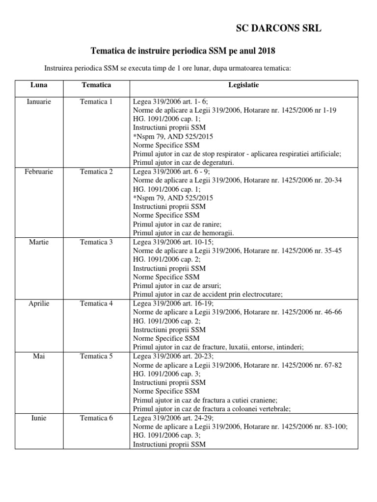 Tematica Anuala Instruire Periodica Pentru Sofer 2015