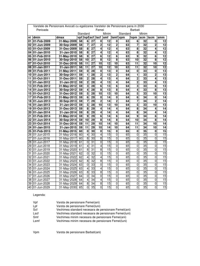 Anexa 5 Tabel Varste De Pensionare Grila Extinsa