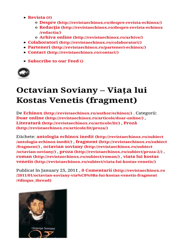 Despre Viaţa Lui Kostas Venetis De Octavian Soviany Printesa Urbana