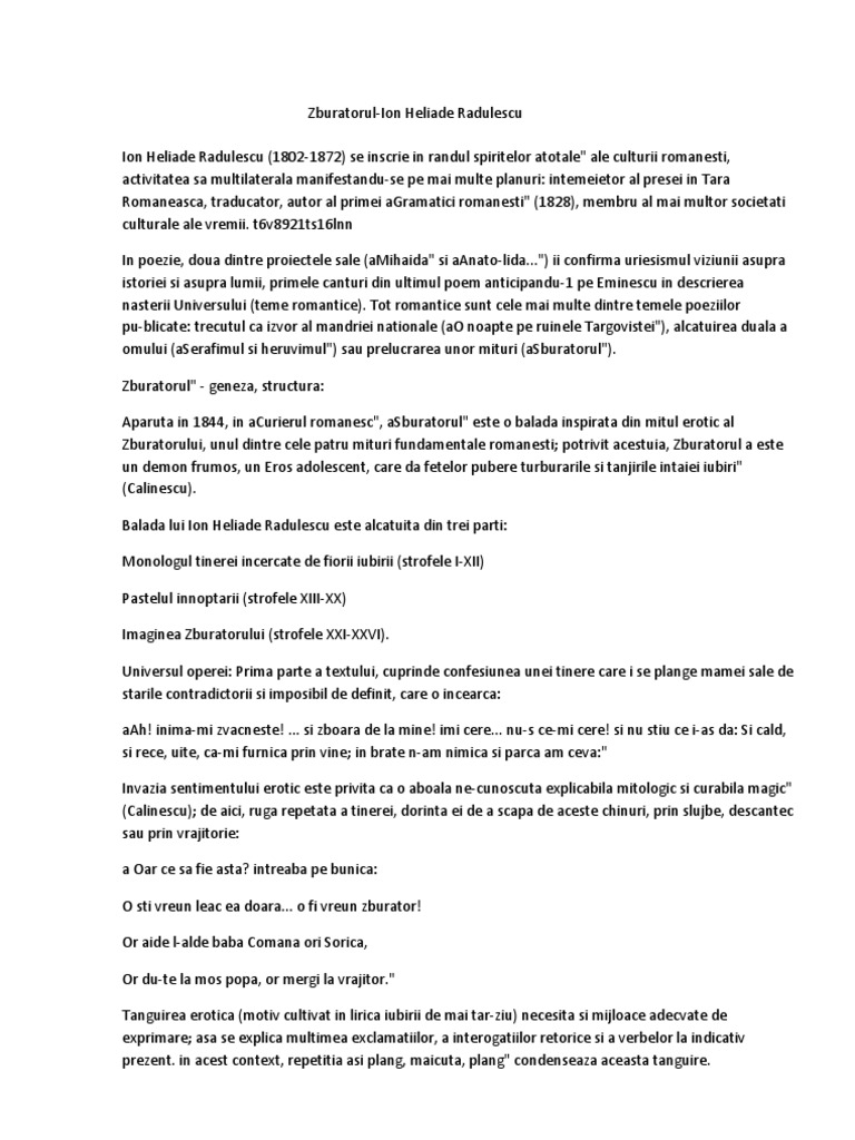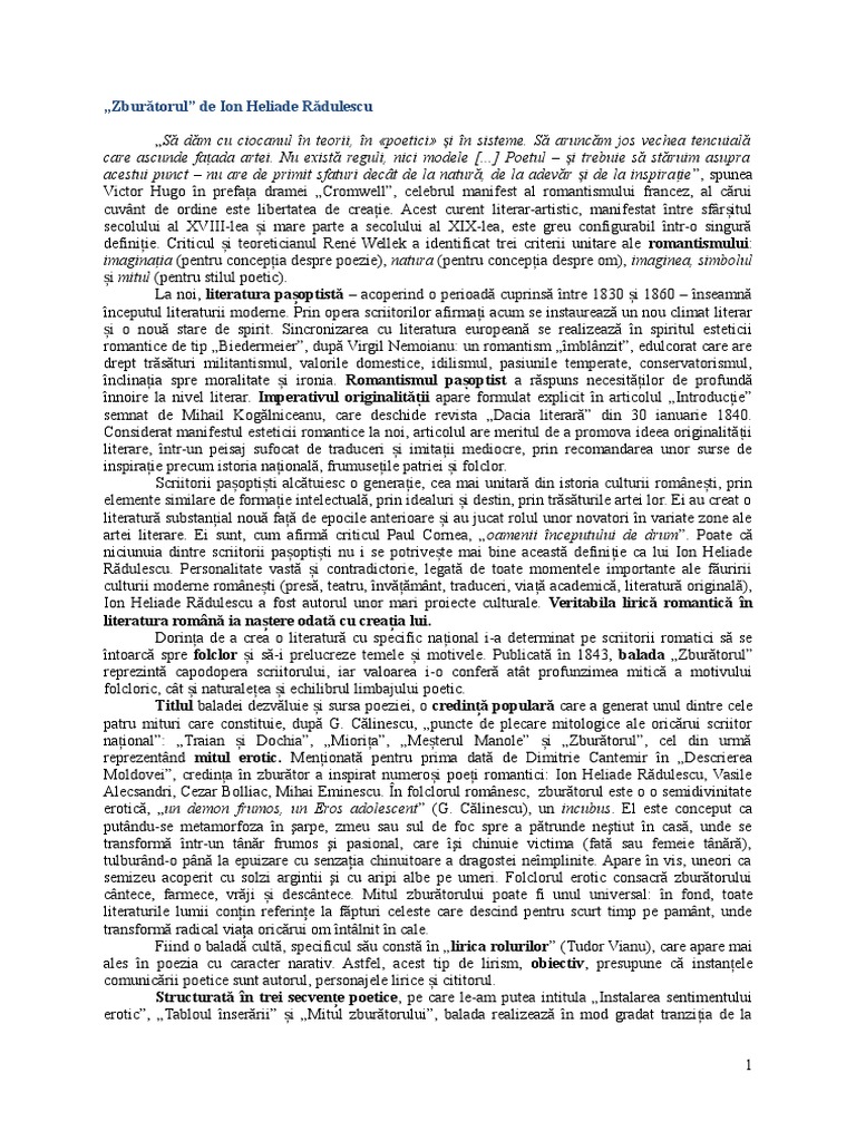 Zburatorul De Ion Heliade Radulescu Comentariu